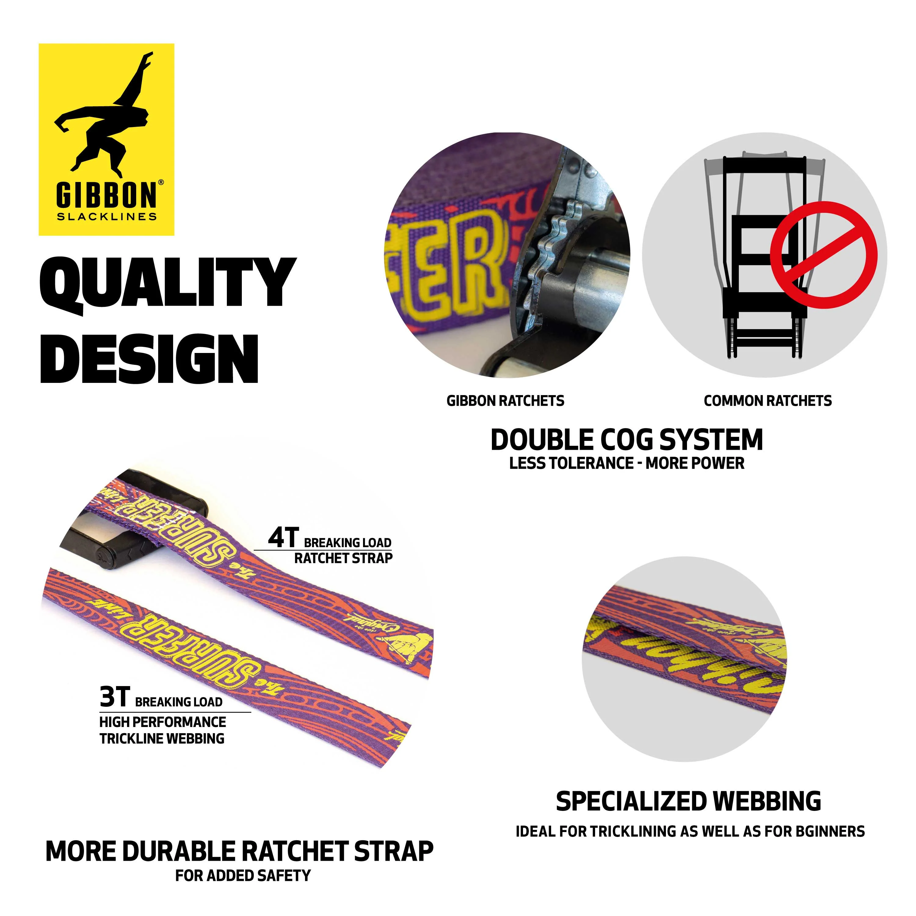 The SURFERLINE SET by GIBBON SLACKLINES is a 30 m long, 5 cm wide, high-quality complete slackline set featuring an extra-long lever ratchet for maximum tension and safe, powerful performance. Including TreeWear protectors, itβs ideal for beginners, adventurers, and freestyle athletes looking to master flips, tricks, and long dynamic rides.